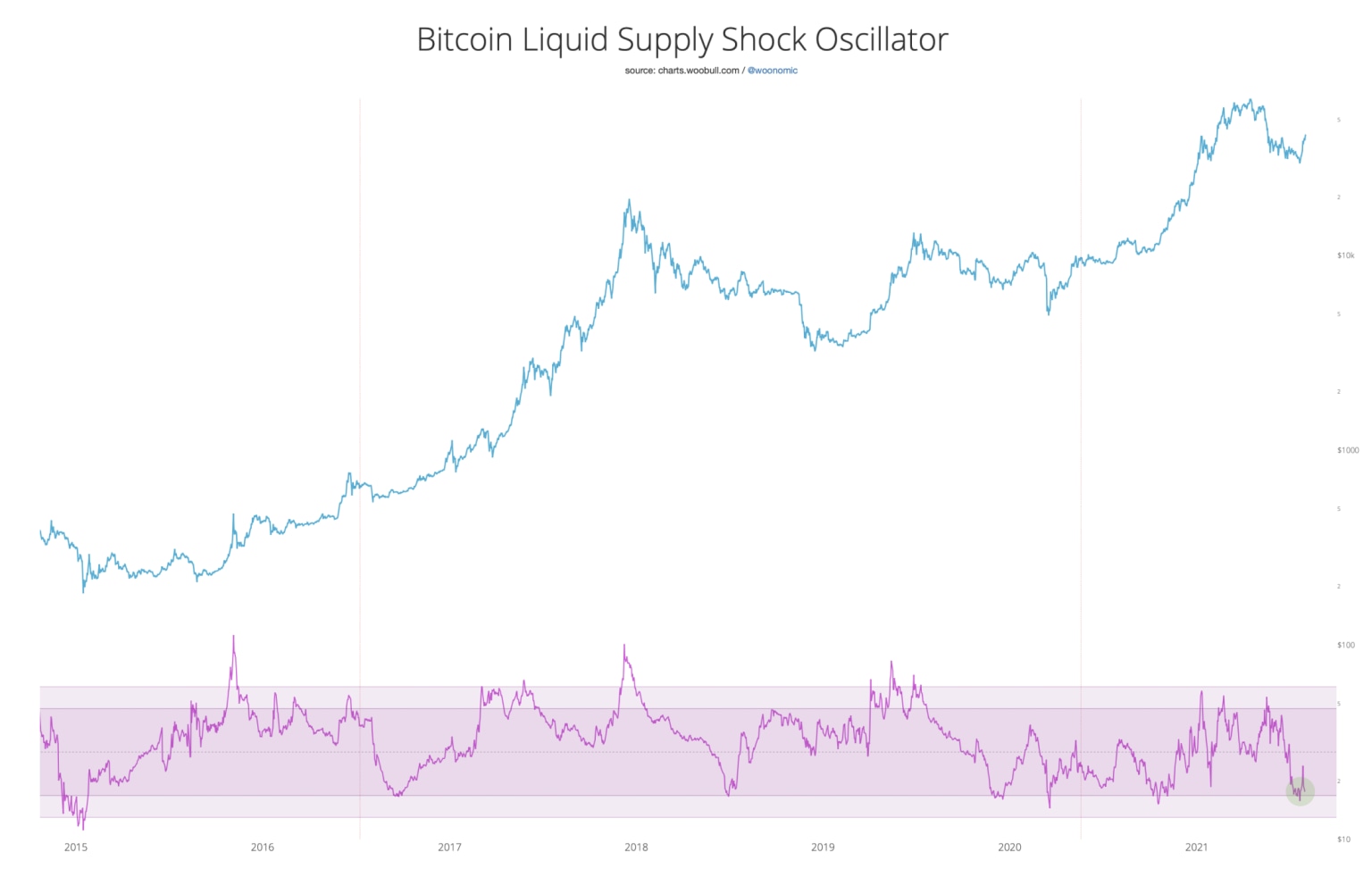 "As of today, the Liquid Supply Shock metric is at a level which is consistent with a $55K price level," the analyst wrote on Aug. 1, pointing at the high deviation between the available supply and the current Bitcoin prices.