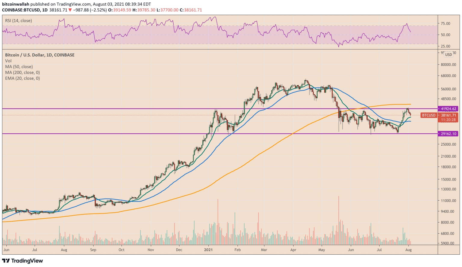 "My expectation is similar to BTC at $20k all-time-high in January, where the price is pinned close to the $40k-$42k ceiling over a period of days (2 weeks maximum) wearing down sellers, followed by a faster move to $50k," said Woo.