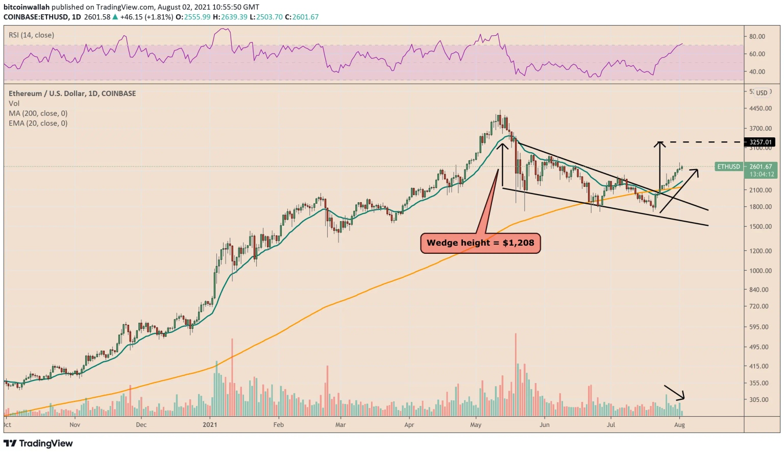 In detail, the ETH/USD pair topped out at $2,699 on Sunday for the first time since June 7. The pair’s peak level also pushed its relative strength index (RSI), a momentum-gauging indicator, above 70 — a mark that analysts consider overbought.