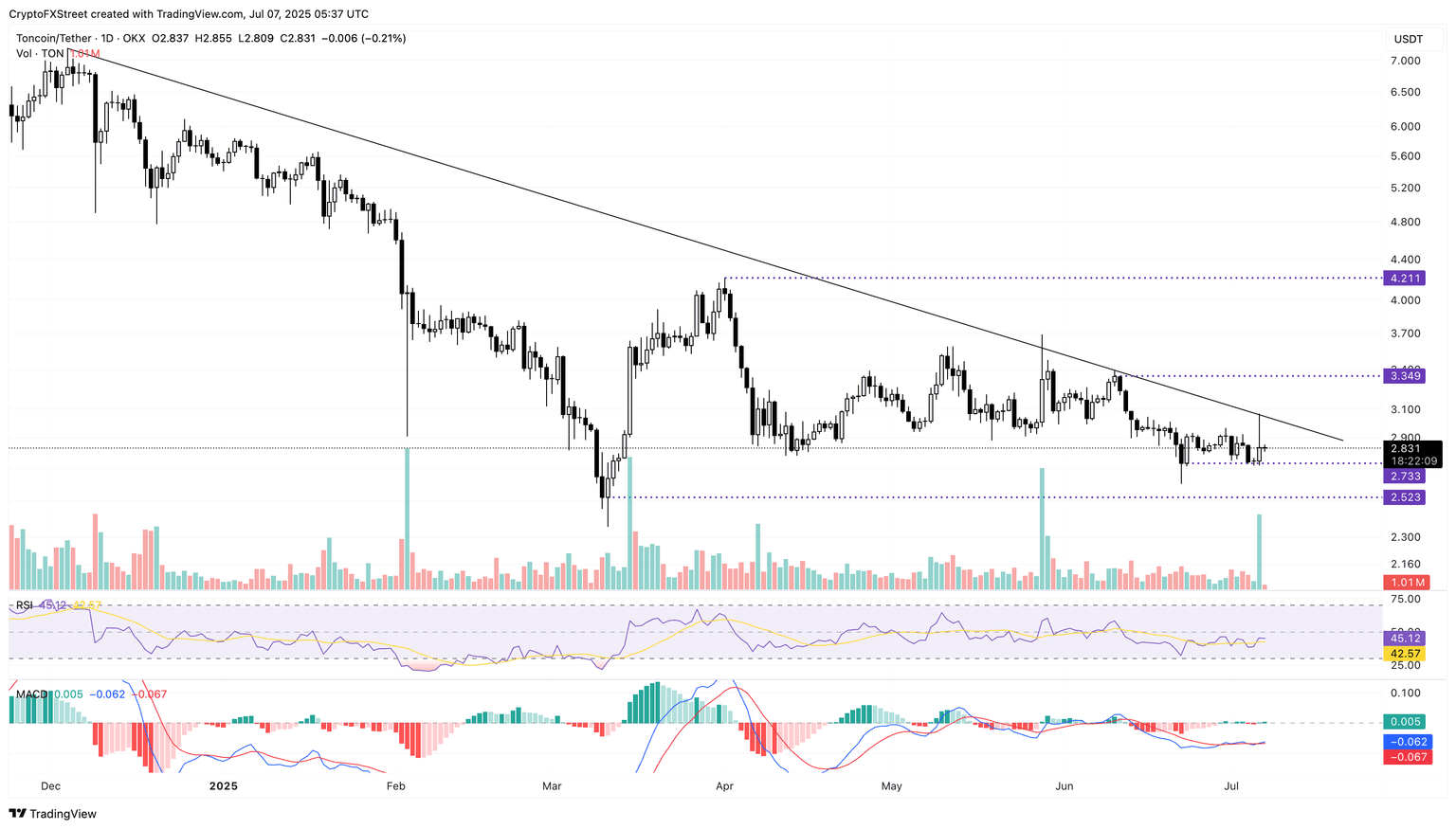 Toncoin (TON) edges lower on Monday following a 3.31% gain and a daily close at $2.83 on Sunday after momentarily reaching the $3 mark amid the UAE golden visa controversy. The UAE authorities denied any sponsorship deals with the TON Foundation to offer a golden visa for TON holders. As the tables turn, sentiment in the derivatives market declines and the technical outlook maintains a bearish tilt.