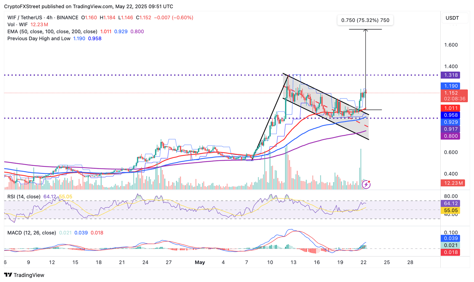 - Dogwifhat extends bull flag pattern breakout targeting highs around $1.74.
