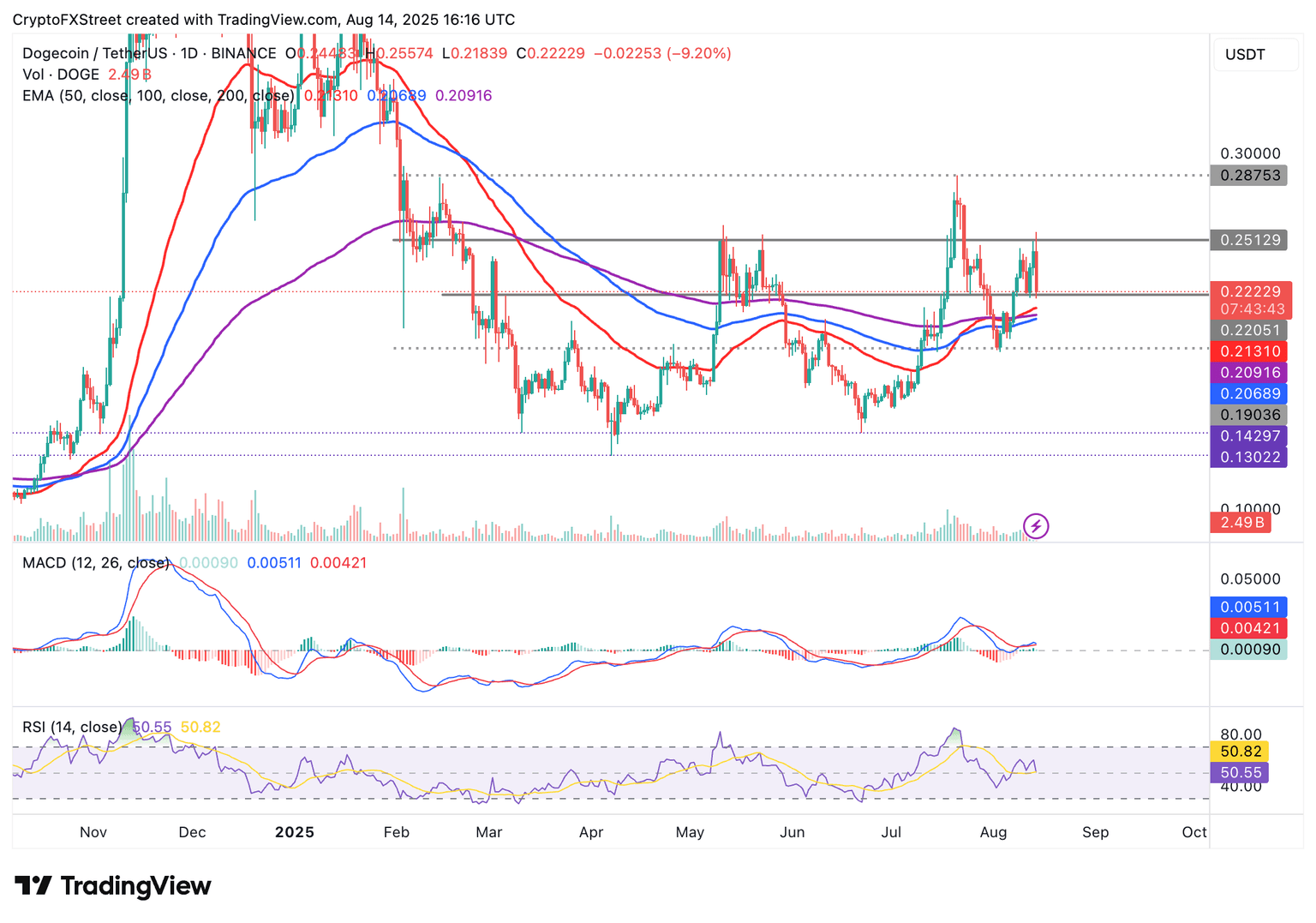 If Dogecoin recovers from immediate support, traders will shift their attention to higher levels such as the hurdle at $0.25, tested on Wednesday, and the July peak of $0.28.