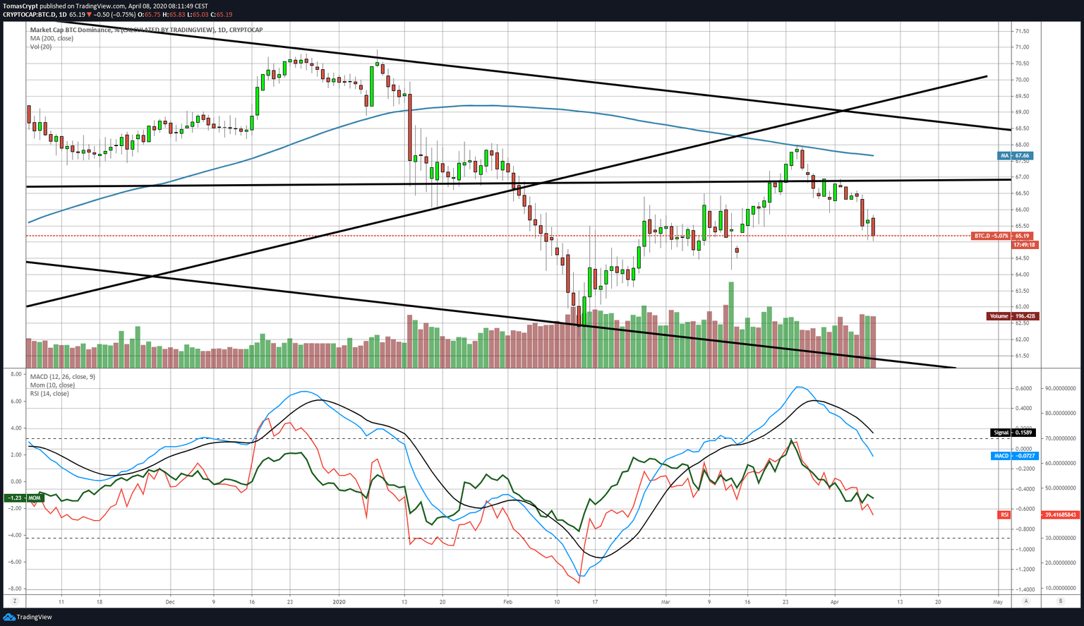 The Bitcoin dominance chart shows an acceleration in the downward trend that started last March 25. The current bearish target points to the 60 level, a level not seen since June 19, 2019.