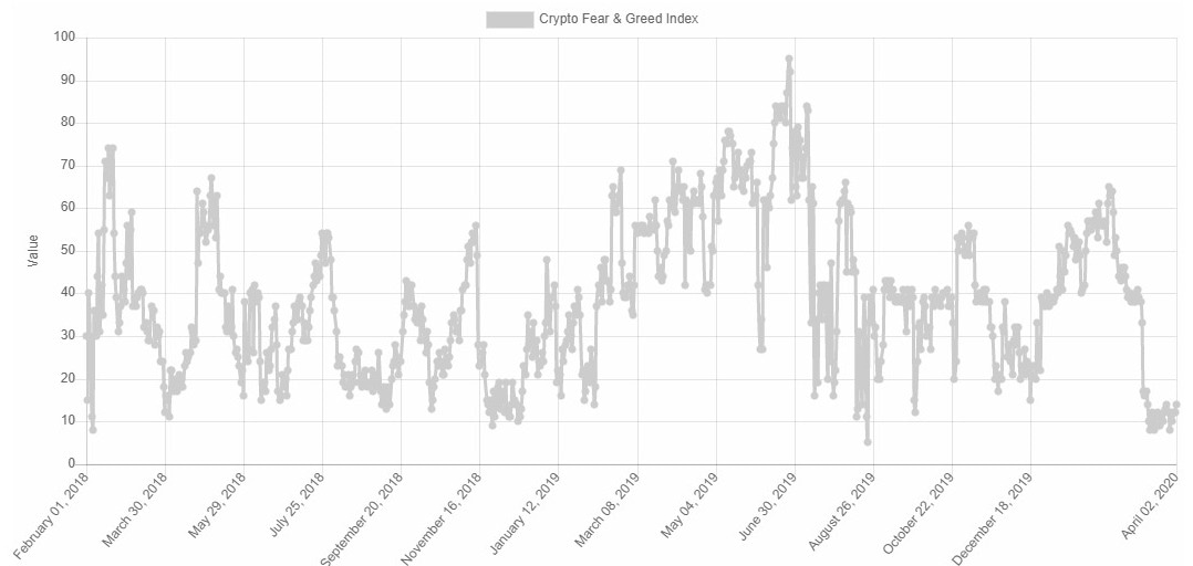 The market sentiment provided by the site alternative.me has improved by two points since yesterday and is at level 14, still in the "Extreme Fear" zone.