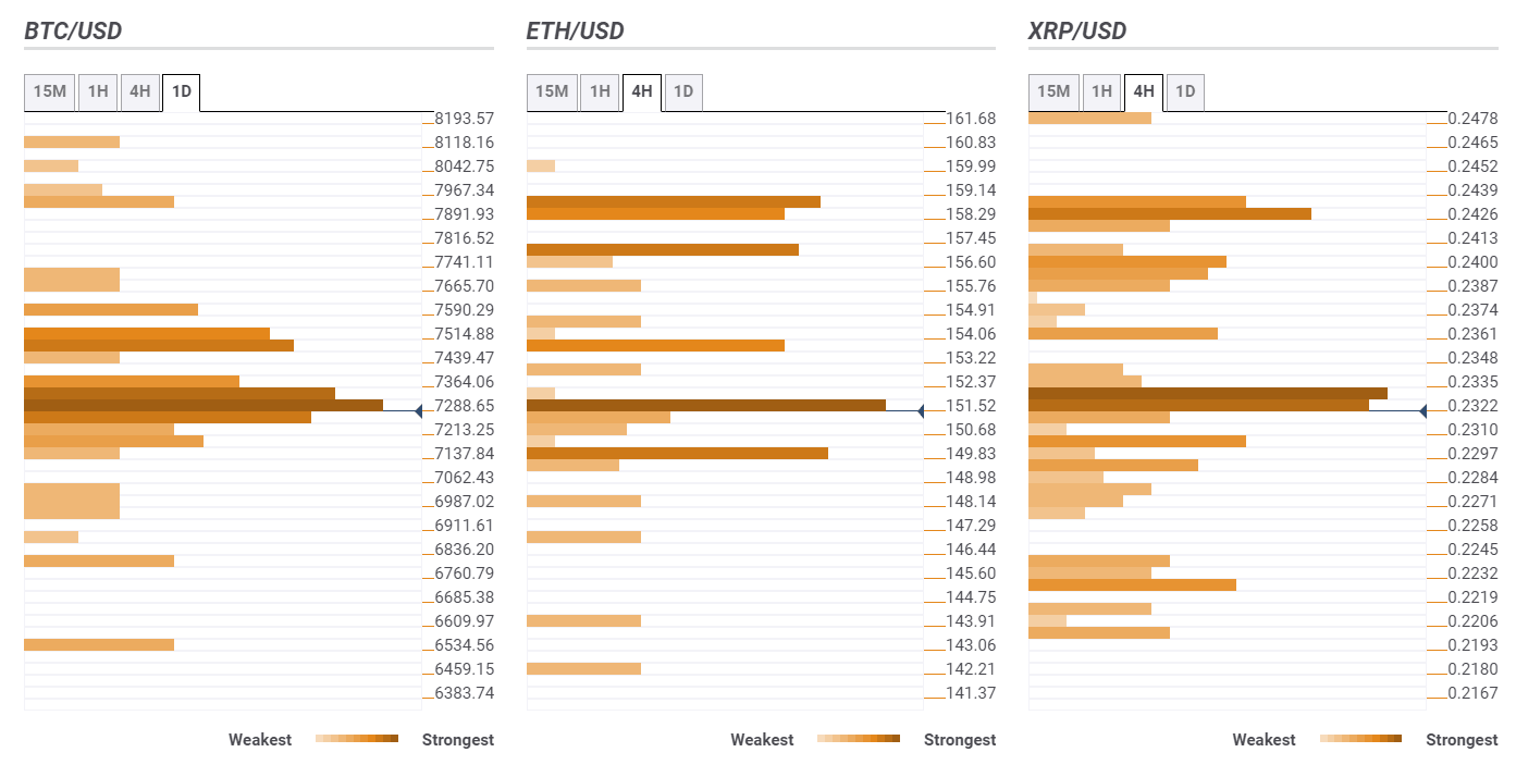 The top three coins are seen extending the downward spiral in the week ahead, with the key supports and resistances noted below, as indicated by the Confluence Detector.