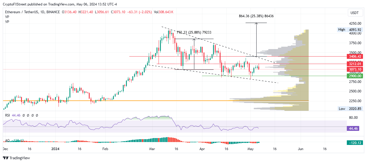 On the other hand, increased selling pressure could send Ethereum price below the $2,900 support. In a dire case where ETH records a lower low below $2,800, the bullish thesis would be negated.
