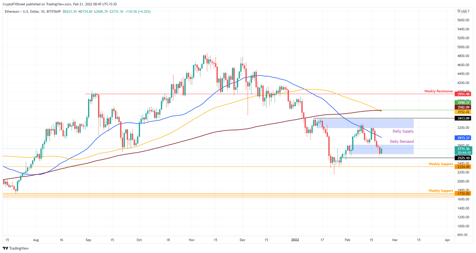 The upside for the smart contract token is capped at the 50-day Simple Moving Average (SMA) at $2,973 or the lower limit of the supply zone at $3,188. A daily close above $3,393 will forecast a possible retest for Ethereum price at the $3,600 level.