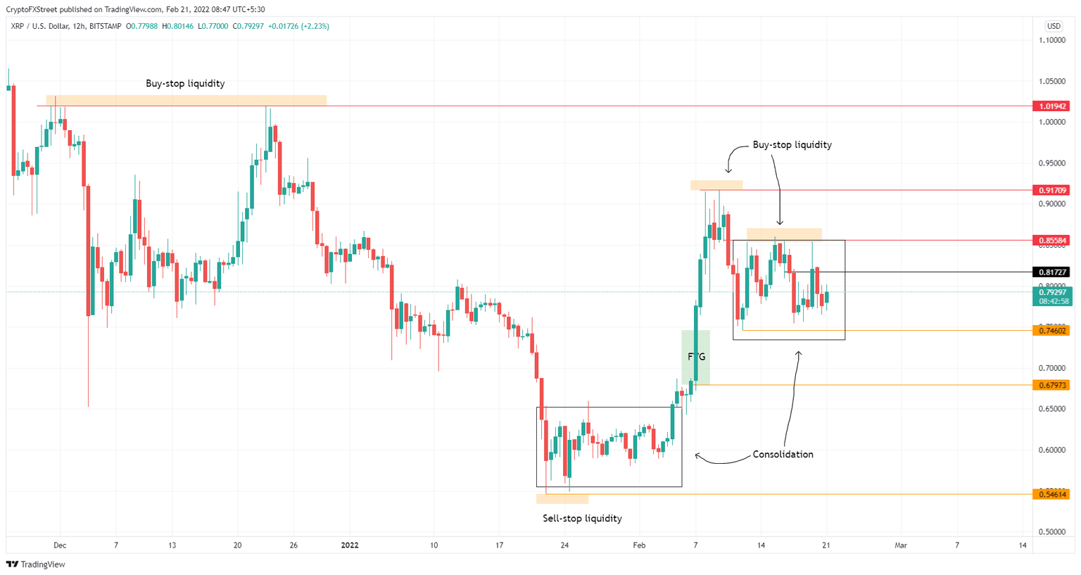 Ripple price has been consolidating since February 12 and is primed for another explosive breakout. An upside move seems likely considering the recent bullish outlook for bellwether influencer BTC.