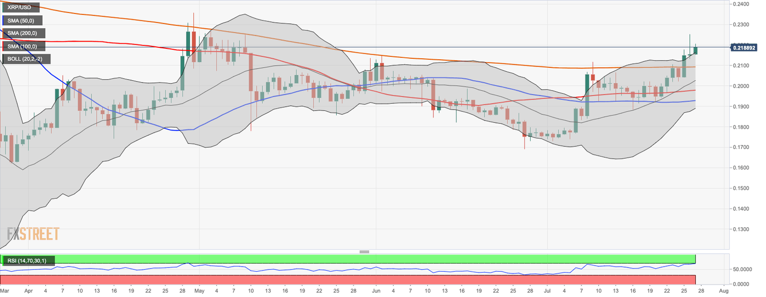 Above the current price, the first resistance level is at $0.2200, then the second at $0.2250 and the third one at $0.2300.