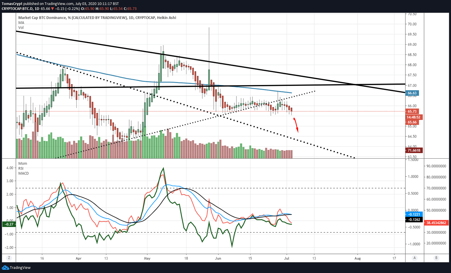The concurrence of both situations points to a possible downward movement in the Bitcoin Dominance chart, which would boost Ethereum value against Bitcoin.