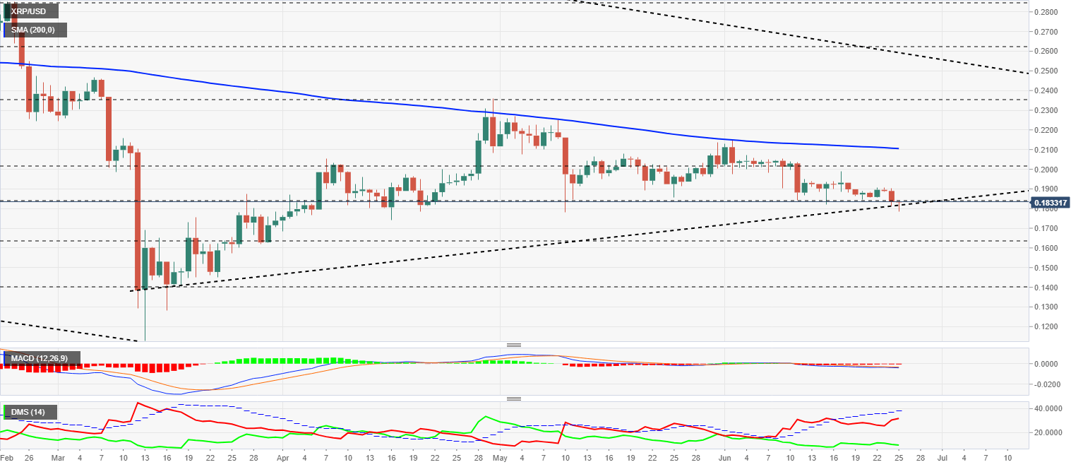 The XRP/USD pair is currently trading at the price level of $0.183 and is regaining the critical support level provided by the rising trend line that shapes the current triangle structure. In case we lose this support level at $0.18, we could see a major sell-off looking for the support level at $0.165 first and $0.14 later.