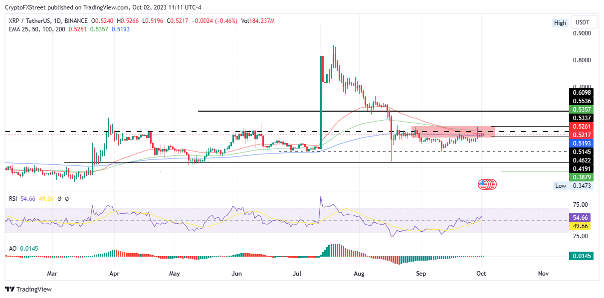 Ripple (XRP) price remains in a sulk, rejected from the mean threshold of the supply zone at $0.5337. This barricade presents as a formidable one, keeping XRP stunted since August 31.