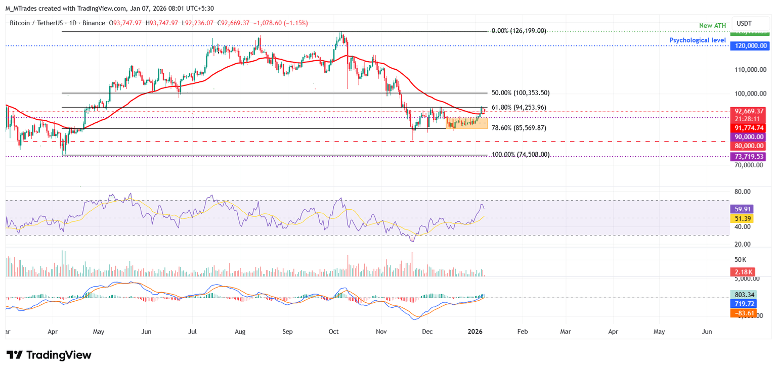 If BTC closes above the $94,253 resistance, it could extend the rally toward the key psychological level at $100,000.
