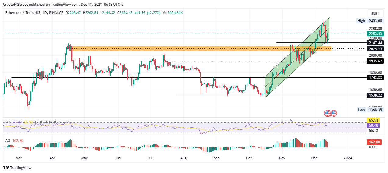 Ethereum (ETH) price is attempting to recover all the ground lost since the December 11 fall, getting tailwinds from the FOMC-inspired optimism. Increased buyer momentum could see Ether reclaim the support due to the midline of the ascending channel at $2,288, or higher, extending to tag the $2,403 range high.