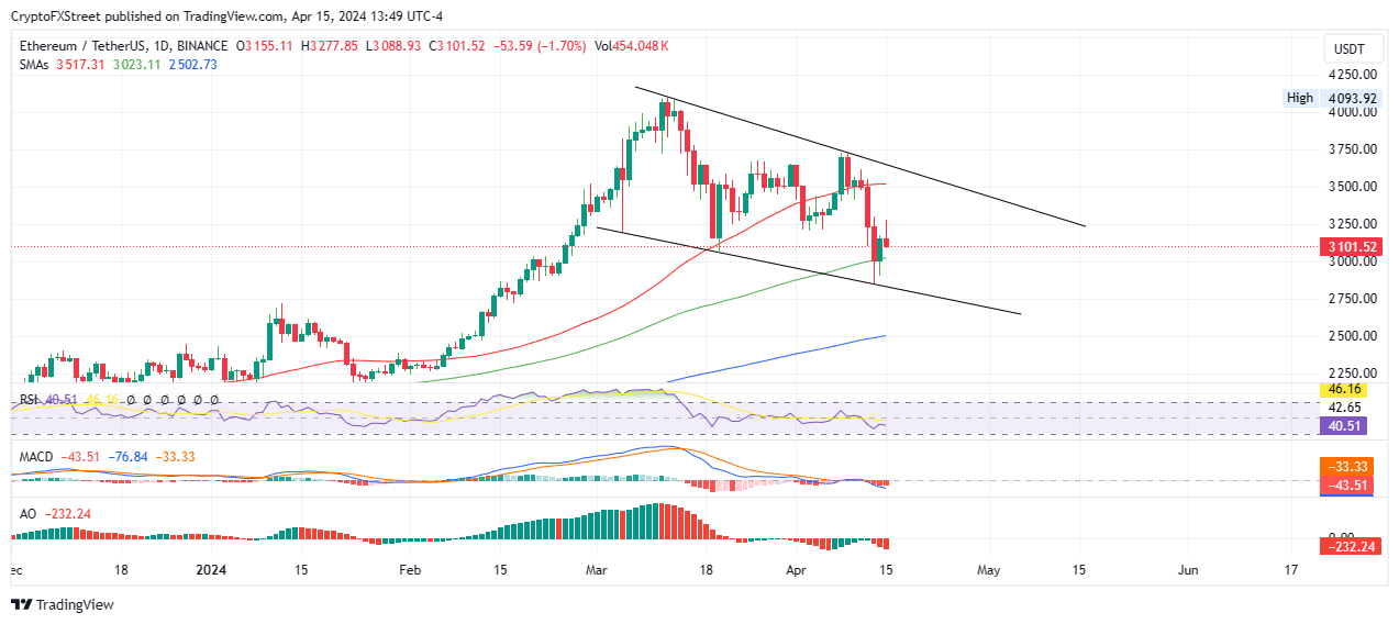 Conversely, with the broader market still in the red, Ethereum price could continue the fall below the 100-day Simple Moving Average (SMA) at $3,023. A candlestick close below $2,750 would invalidate the bullish thesis.