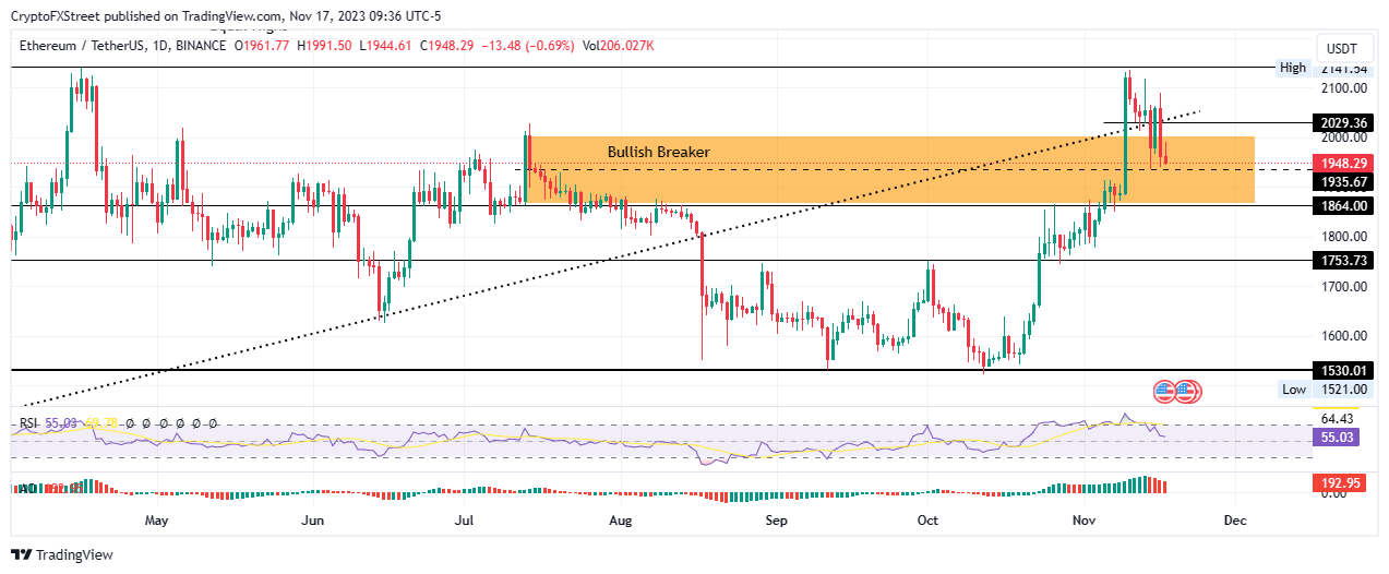- Ethereum price risks at least 5% slump to the $1,864 level if it loses critical support at $1,935.
