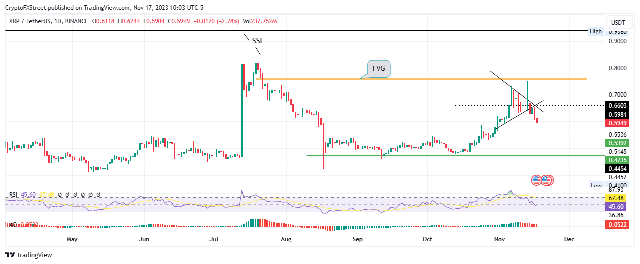 - Ripple price risks a 10% drop to the late October lows if the support at $0.5981 gives way.