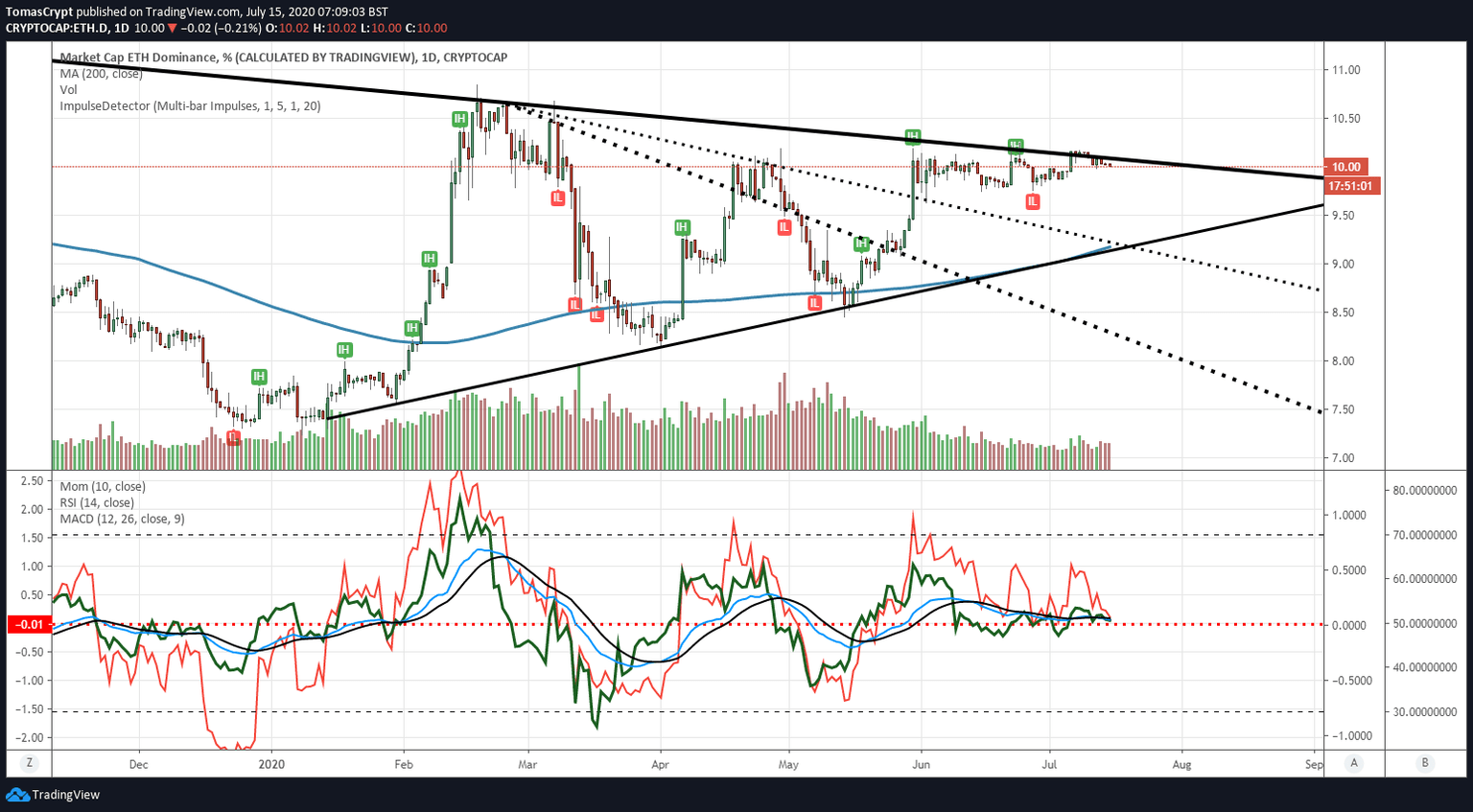 Ethereum also lost market share yesterday and stepped back into the previous bearish scenario. Below the 10.05 level, the bullish momentum disappears and enters a pause waiting for a resolution in the direction of the next move. Above the 10.10 level of dominance, the scenario would be downright bullish again for the Ethereum.