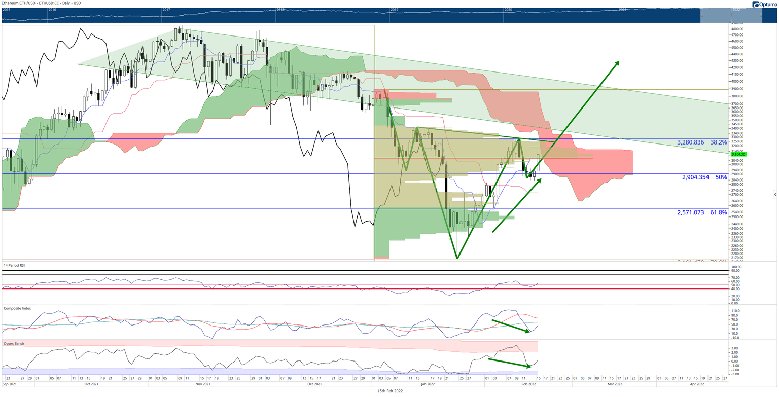 The inverse head-and-shoulders pattern identified on February 12, along with the bullish divergence in Ethereum’s oscillators, all remain in play and structurally unchanged. Etheruem price could dip to the 61.8% Fibonacci retracement at $2,500 before finding a swing low, but it would threaten to cancel the hidden bullish divergence present between the candlestick chart and both the Composite Index and Optex Bands.