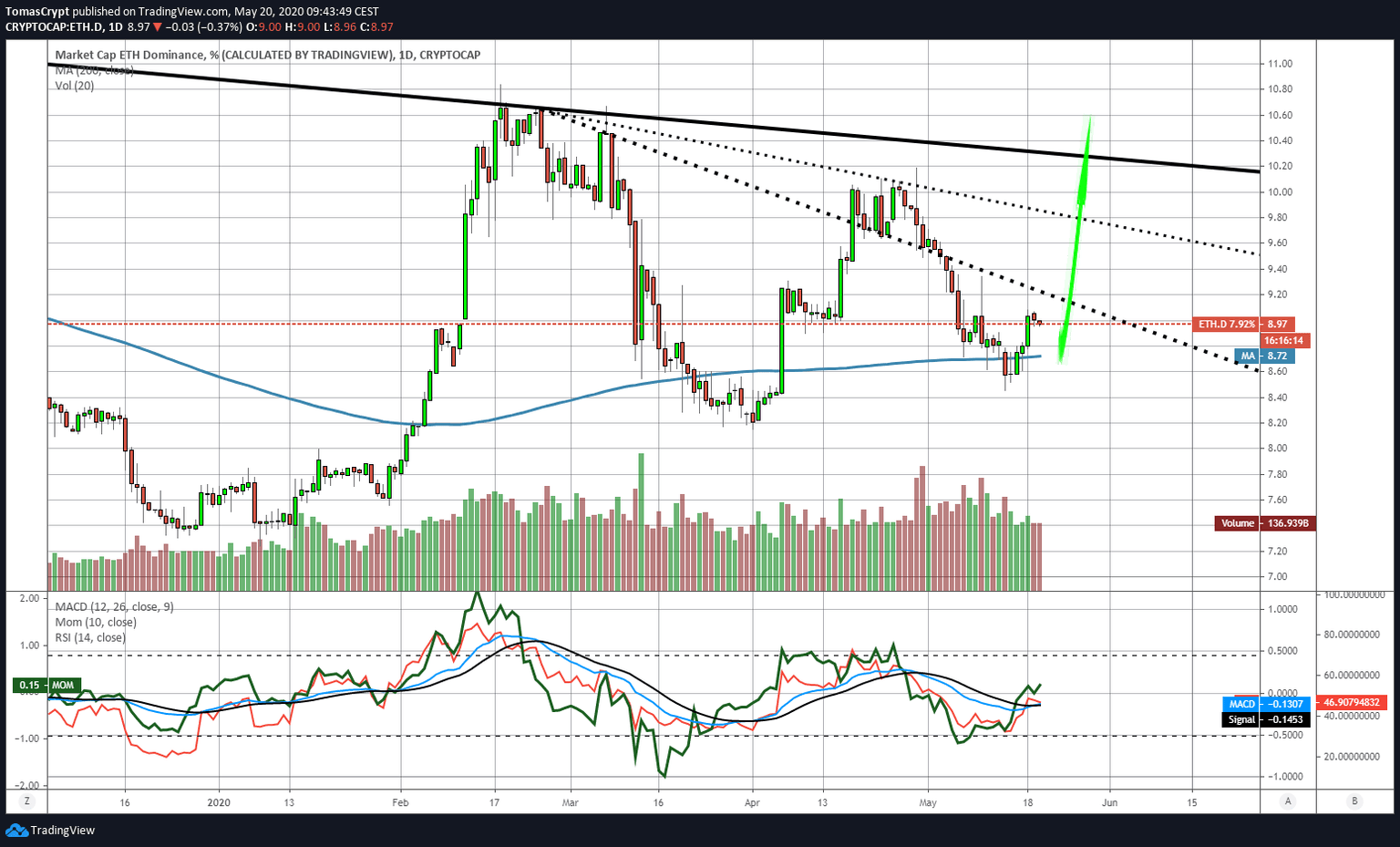 In the case of the Ethereum dominance chart, they show a potentially bullish structure that could take the Ether's market share above 10% of the total market.