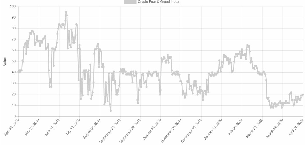 The market sentiment level is improving but diverges from the price movement and the areas where it is moving. Today the Greed & Fear indicator of alternative.me stays at level 20 – extreme fear.
