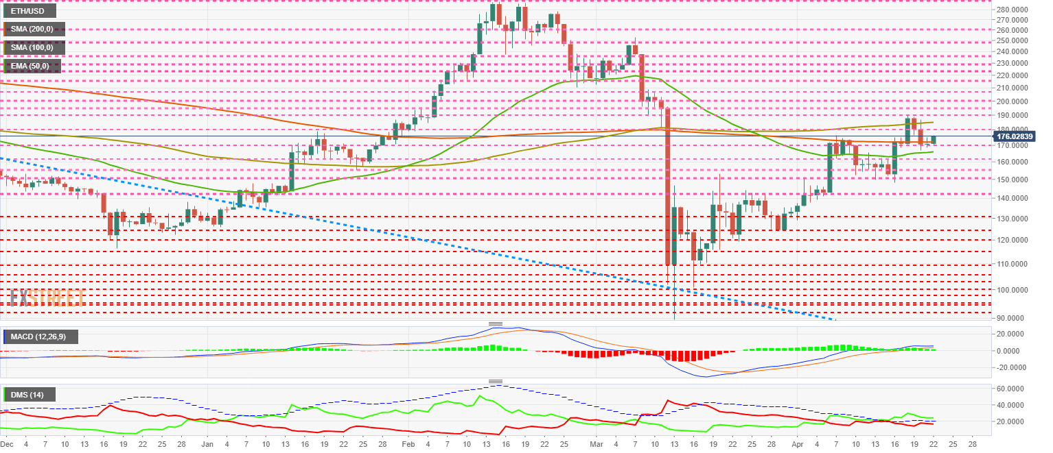 The ETH/USD pair is currently trading at the $176 price level and is moving above the SMA200 today. The main moving averages are also increasing the bullish profile and accompanying the Ether price upwards. The critical level to break out of the bullish trend is at $190.