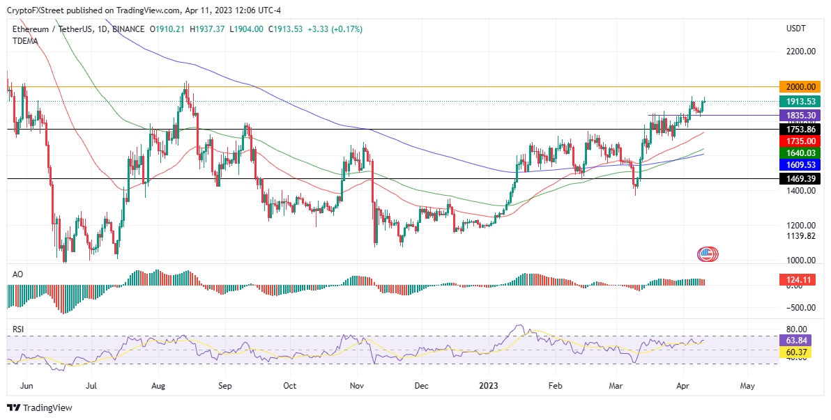 Ethereum price identified a pivot on April 9, using the $1,835 support level as the turnaround point for a recovery rally. The uptick came as the countdown to the Shanghai/Capella upgrade continues, with investors presumably hoping to benefit from the “sell the news” event.