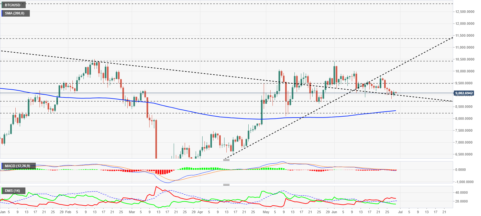 The BTC/USD pair is currently trading at the price level of $9083 while playing dangerously close to the long-term bearish channel ceiling support. Bitcoin has no room below the current level if you want to avoid the lower bearish scenario, with possible targets in the $4000 area. The presence of the 200-day simple moving average in the $8400 zone would provide support, but we don't know if it would prevent a possible collapse of the price.