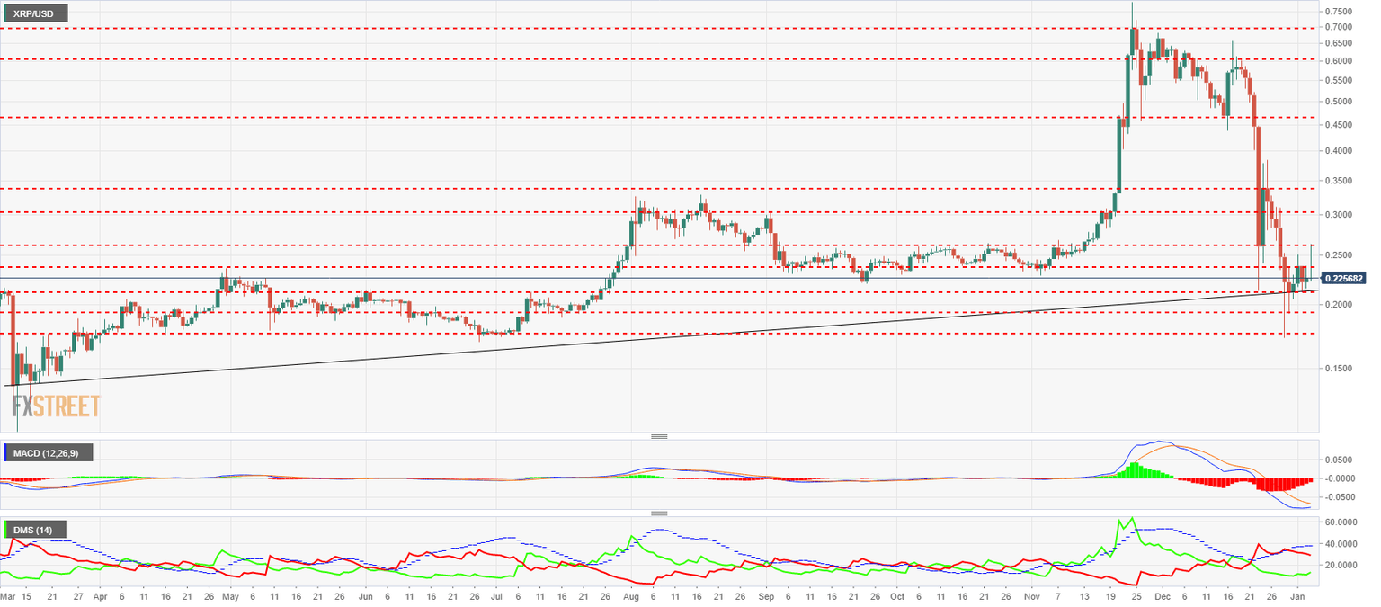 The collapse after the SEC filing took the XRP/USD to $0.175 but XRP managed to close above the upward trend line from the March 2020 lows.