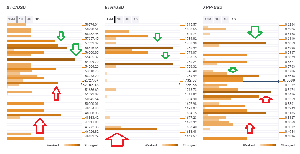 BTC/USD faces strong resistance at around $55,300, and to a lesser extent at $56,500.