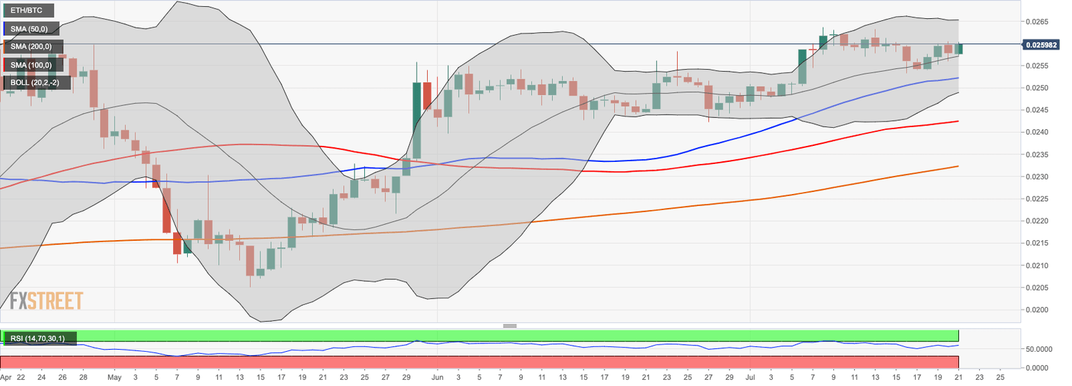 - ETH/BTC resumes the upside move, still below $0.0260.