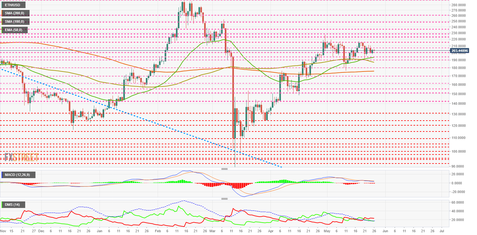 The ETH/USD pair is currently trading at $203.4 after ten days of holding above the $200 support level.