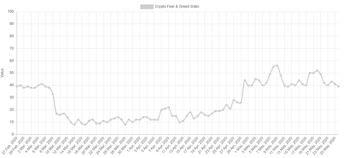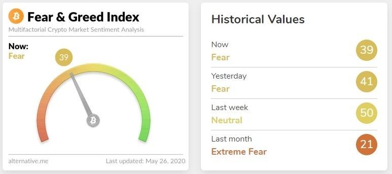 The average price of BTC/USD over the last 21 days is $9287, about 50% of the historical high, therefore a neutral range. Contrary to what one might expect, the market does not have this perception but rather accentuates the pessimism.