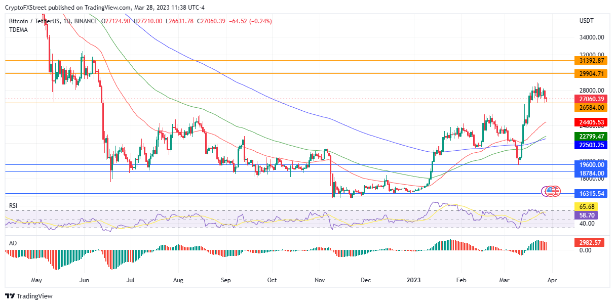 The Commodities Futures Trading Commission (CFTC), suing Binance and its CEO Changpeng Zhao, has directly impacted the market, triggering a new downtrend for Bitcoin price and other assets. If selling pressure increases, BTC could drop below the immediate support level at $26,584.