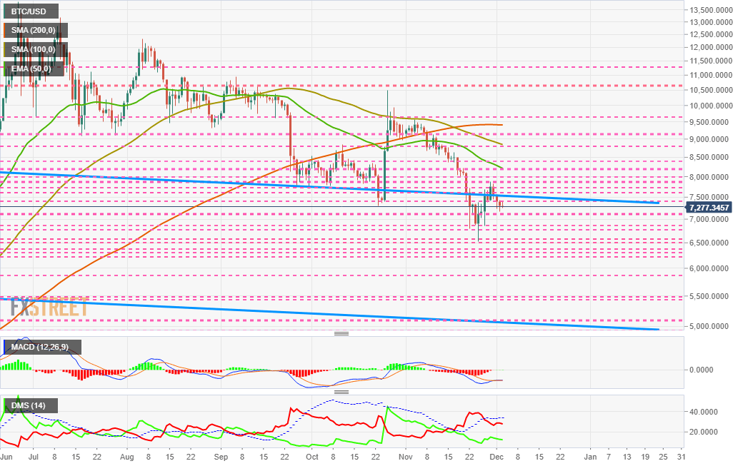 The BTC/USD pair is currently trading at the $7.277 price level. Technically the situation is complex.