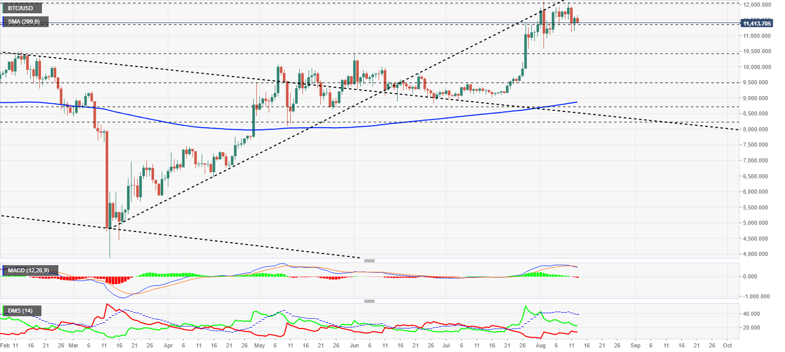 Above the current price, the first resistance level is at $12000, then the second at $12350 and the third one at $12500.