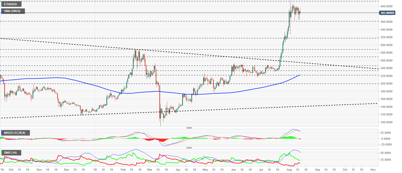 The ETH/USD pair is currently trading at $388.4 and is losing its gains during the Asian session.