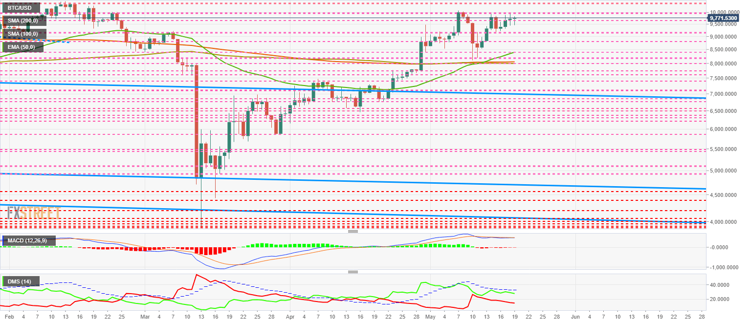 Above the current price, the first resistance level is at $9600, then the second at $10000 and the third one at $10450.