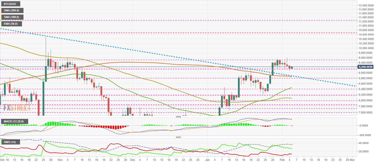 BTC/USD is currently trading at the price level of $9241 and confirms the strength of support at the $9200 level. The arrival of the Bitcoin dominance chart at the trend line could drive the price higher.