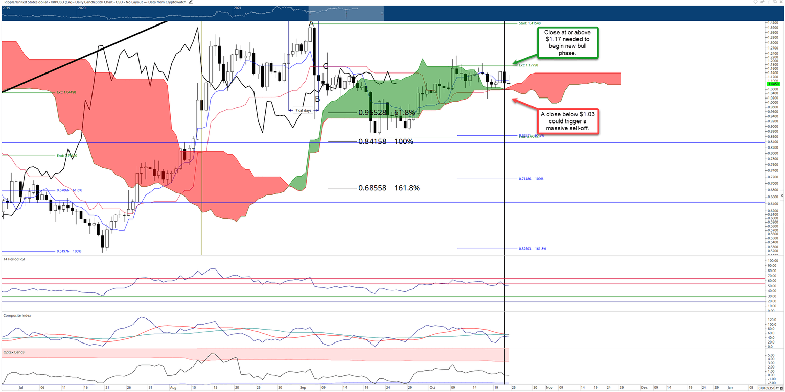 XRP price has spent the past two weeks trading in a very constricted trading range. The bodies of the daily candlesticks have been limited to $1.08 on the low side and $1.16 on the high side. From an Ichimoku perspective, XRP has fulfilled all conditions to confirm an Ideal Bullish Ichimoku Breakout – buy buyers need to step in and push Ripple higher. A close at or above $1.17 would likely be sufficient for XRP to begin a 50% upswing towards the $1.60 - $1.70 value area.