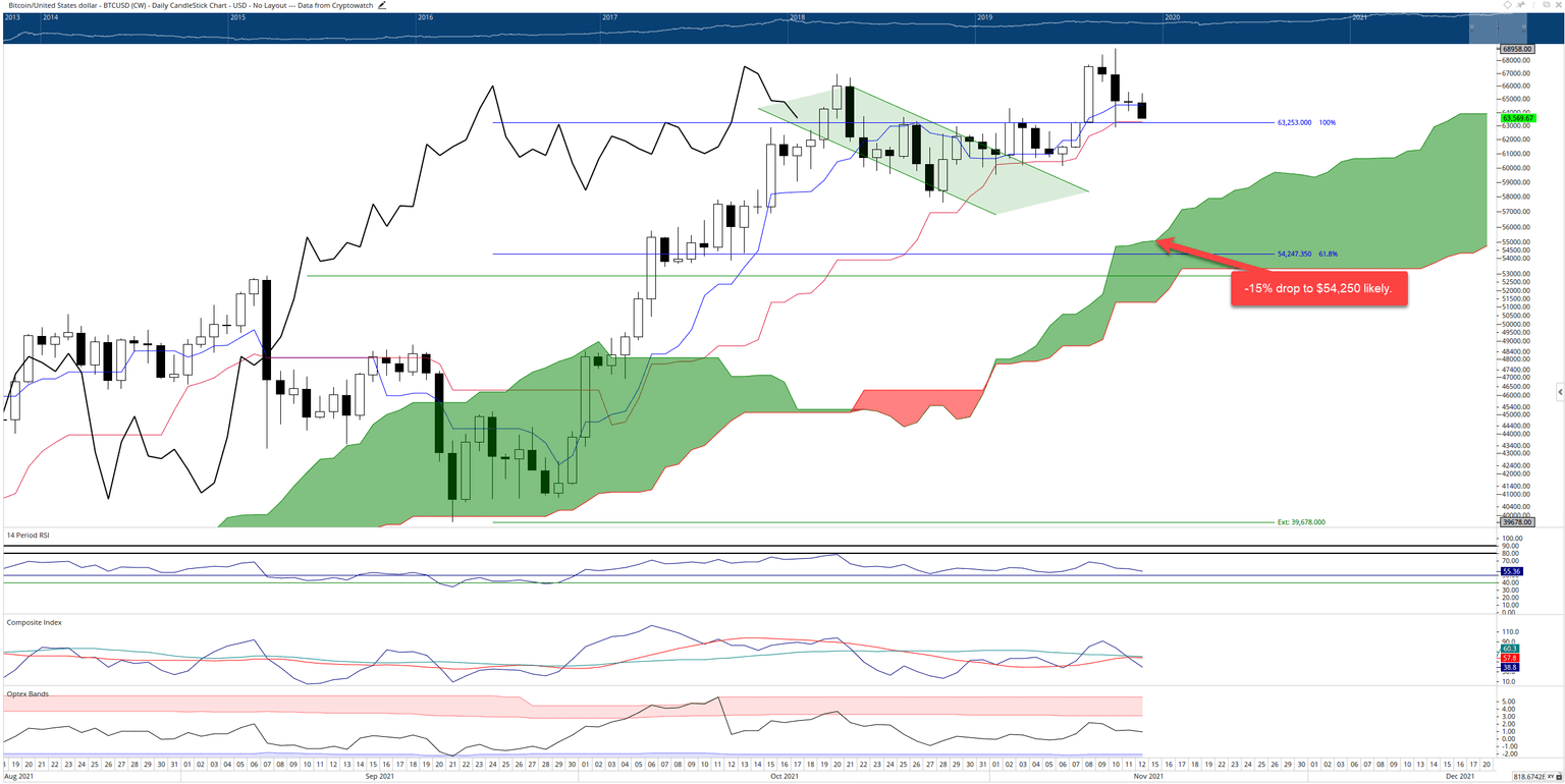 Bitcoin price is currently testing its final Ichimoku support level, the Kijun-Sen ($63,250), before deciding whether to bounce or collapse. If Bitcoin fails to hold the Kijun-Sen as support, then the next support level within the Ichimoku Kinko Hyo system is the top of the Cloud at $54,250. That would represent a 15% drop from Friday’s open. On the other hand, if Bitcoin does fall to that level, then $54,250 should hold because $54,250 is the 61.8% Fibonacci extension and the weekly Tenkan-Sen.