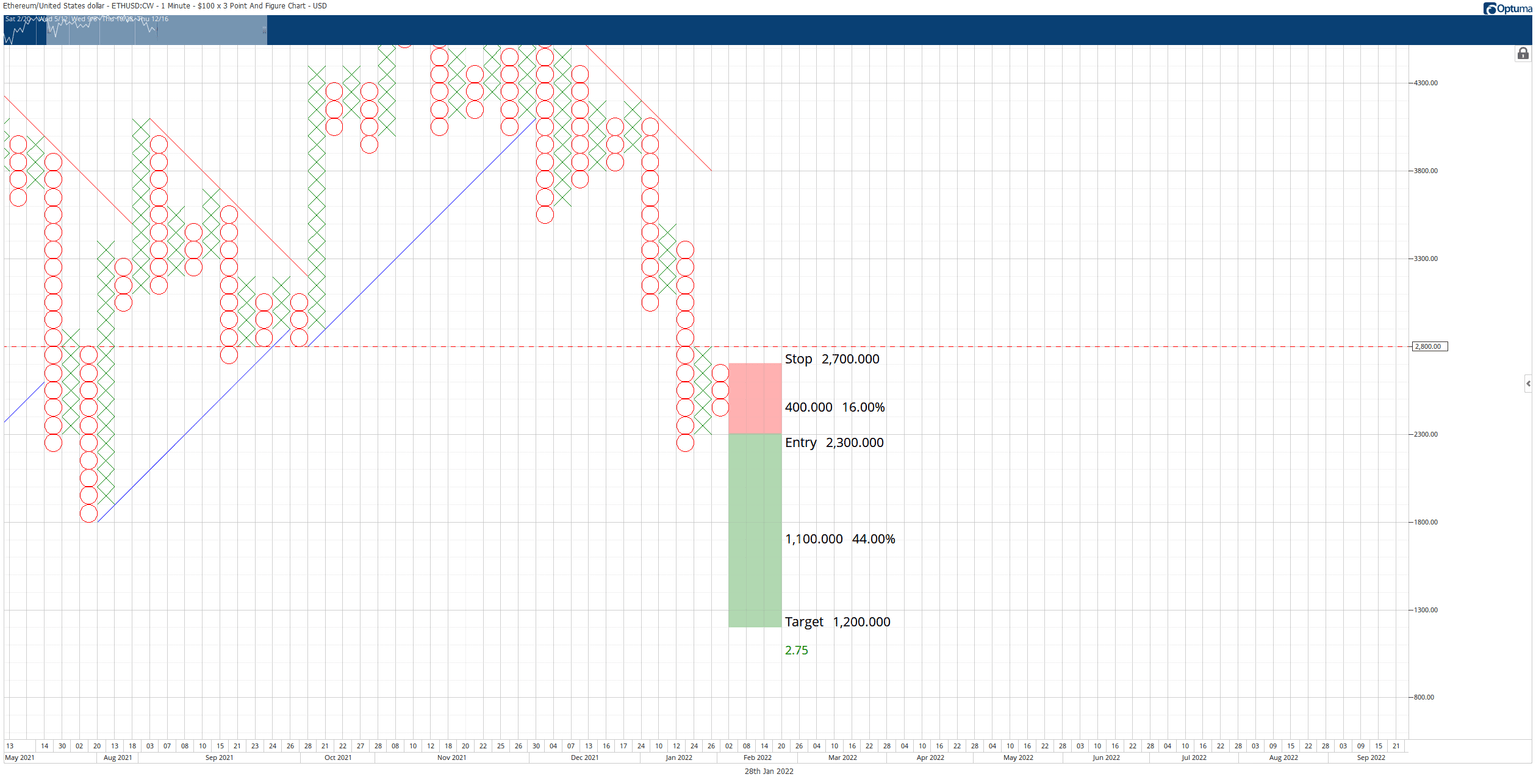 ETH/USD $100/3-box reversal Point and Figure Chart