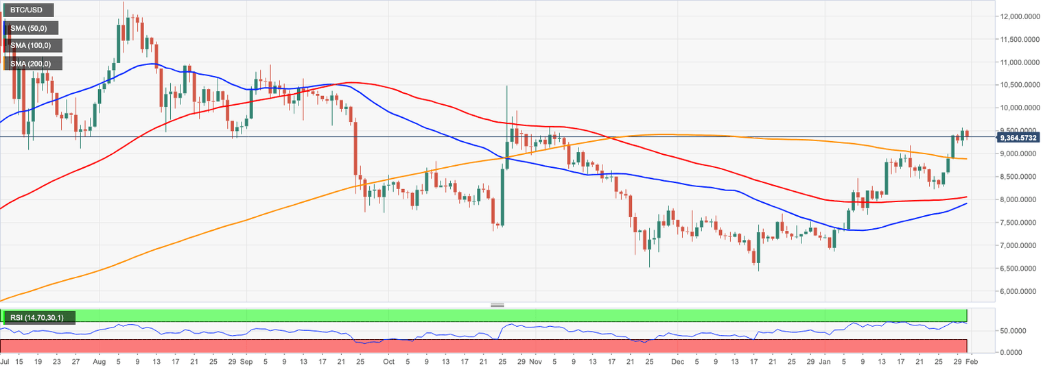 Below the current price, the first support level lies at $9,200 (SMA100 1-hour), then the second is at $9,000 reinforced by SMA200 daily and the third one is at $8,550.
