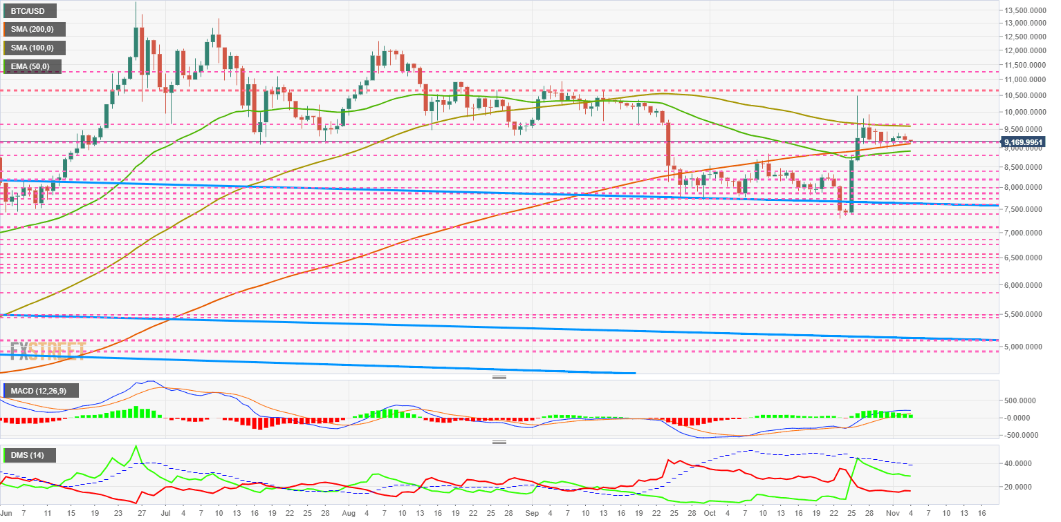 BTC/USD is currently trading at $9,169.9, staying one more day in the narrow range of the last few days.