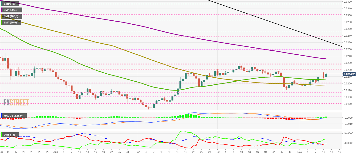 The DMI on the daily chart shows how the bears lose the ADX line and confirm that the ETH/BTC pair has a massive bullish trend ahead.
