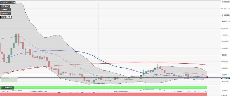 ETH/USD broke below $150.00 handle and hit the intraday low of $145.50, which is also the lowest level since March 2019. Ethereum moves in sync with bitcoin, which means the coin may be in for further decline towards $130.00. The price created a large red candle after a long series of dodgy candles. An extended period of consolidation resulted in a bearish breakthrough, which may lead to a long-term downside trend.