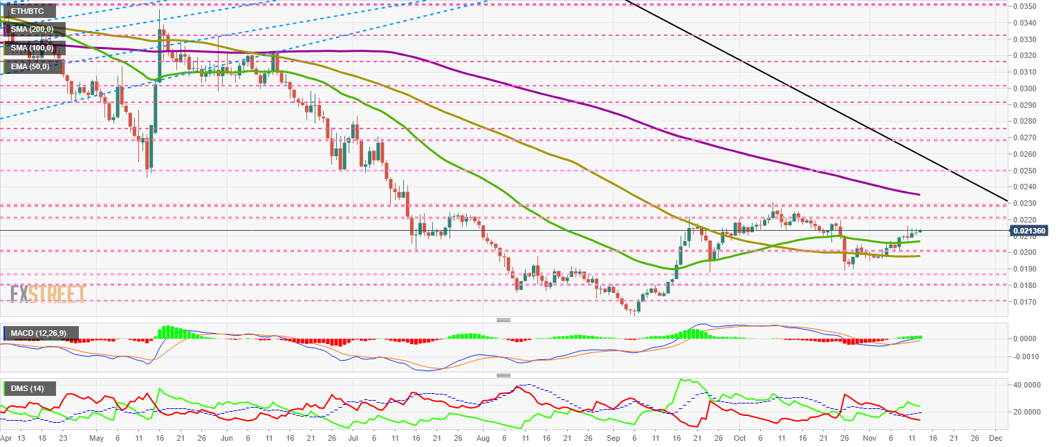 The ETH/BTC pair is currently trading at the price level of 0.0213 (+0.58%), enjoying the third consecutive day of gains. The path to the 0.022 level is more robust than expected, weakened by the short intraday range we see in the pair’s two components.