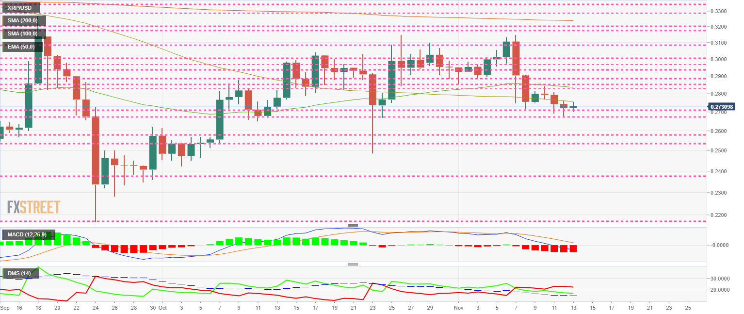 The DMI on the daily chart confirms the MACD scenario. The bears control XRP/USD while the bulls give no sign of wanting to move higher.