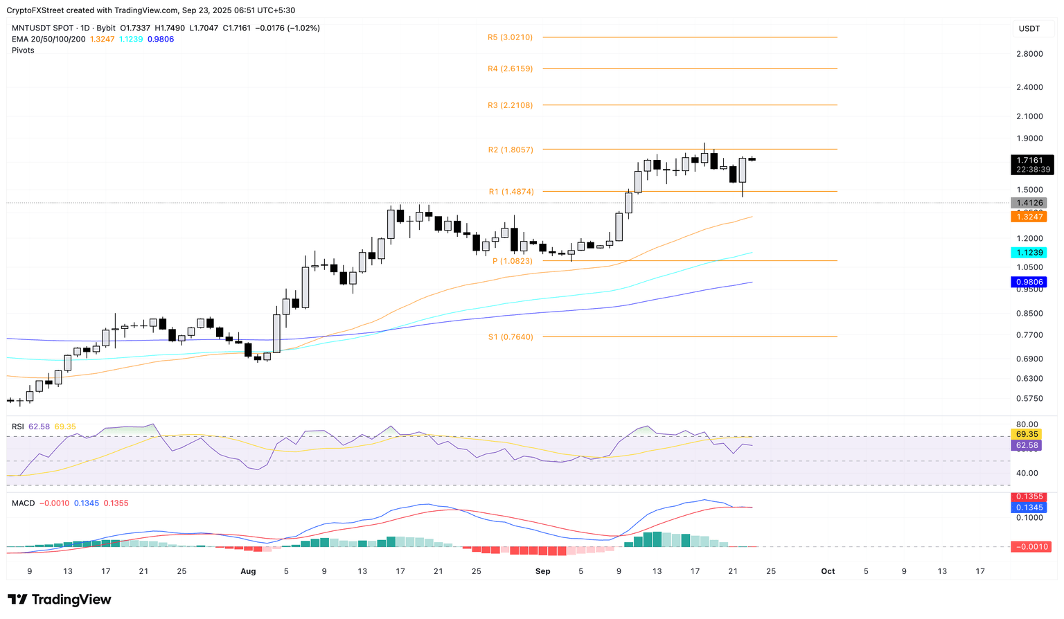 A decisive close above $1.80 could extend the Mantle rally to the R3 pivot level at $2.21.