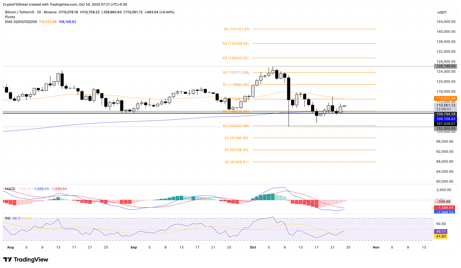 Bitcoin trades above $110,000 at press time on Friday, after a 2% rise on the previous day. The bounce back in Bitcoin could face resistance at the 50-day Exponential Moving Average at $113,334, aligning with the centre Pivot Point.